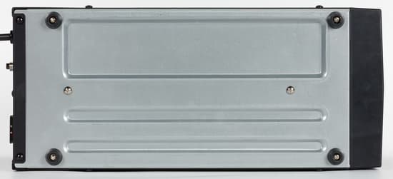 Нижняя часть корпуса не окрашена в черный цвет, как другие элементы, и на ней по углам находятся четыре резиновые ножки. Важной особенностью этого источника является тот факт, что для доступа к батареям необходимо полностью раскрутить корпус устройства. Винты крепления расположены не только на тыльной стороне Powercom Macan MAS-3000, но и на боковых стенках (по два винта в нижней части).