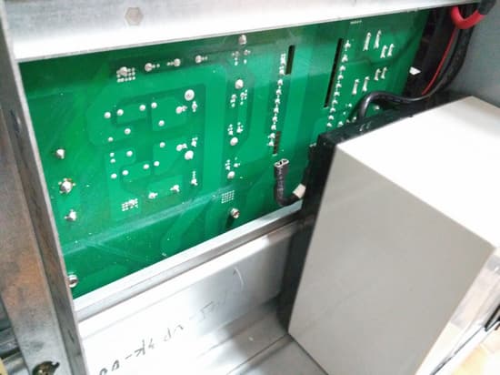 Основу инвертора составляет набор из нескольких качественных транзисторов IGBT FGL60N100, FGL40N120 и FDA59N30. ИБП оправдывает свой немалый вес не только емкими аккумуляторами, но и основательной конструкцией электронной части. Греющиеся компоненты внутри ИБП имеют небольшие массивные алюминиевые радиаторы, которые охлаждаются принудительной конвекцией воздуха.