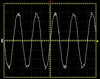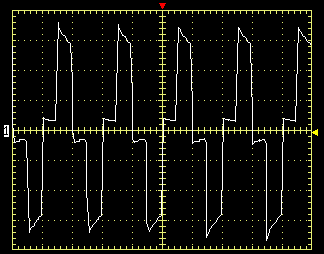 При работе схем AVR, как при повышении, так и при понижении сетевого напряжения, выходная синусоида по нашим замерам получается слегка «грязноватой», особенно это заметно при работе второй ступени повышения напряжения.