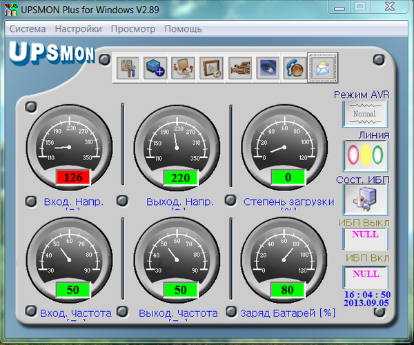Основные параметры демонстрируются в главном окне программы на стрелочных индикаторах.