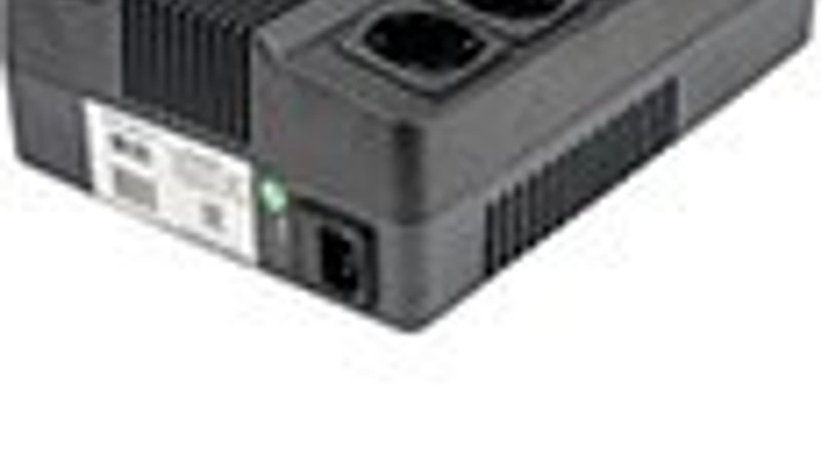 Никаких интерфейсных разъемов для связи с компьютером, USB или RS232, нет: дистанционные мониторинг и управление не предусмотрены. Конечно, это не позволит до исчерпания заряда в батарее автоматически завершить работу ОС, установленной на подключенном к источнику компьютере, зато снижает цену изделия. Если такая функция важна, придется выбирать ИБП другой модели — например, Powerman Back Pro 800 Plus, оснащенный USB-интерфейсом и укомплектованный программой Upsilon. Он, кстати, сделан в компактном вертикальном корпусе, и на его задней стенке удалось разместить всего две розетки Schuko.