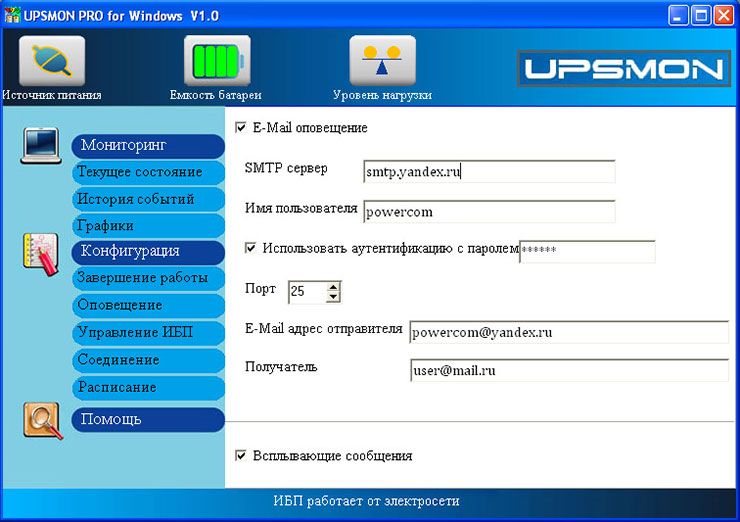 Компания Powercom предлагает бесплатное фирменное программное обеспечение UPSMon в нескольких версиях. Оно работает на базе технологий Java и может запускаться на разных операционных системах.