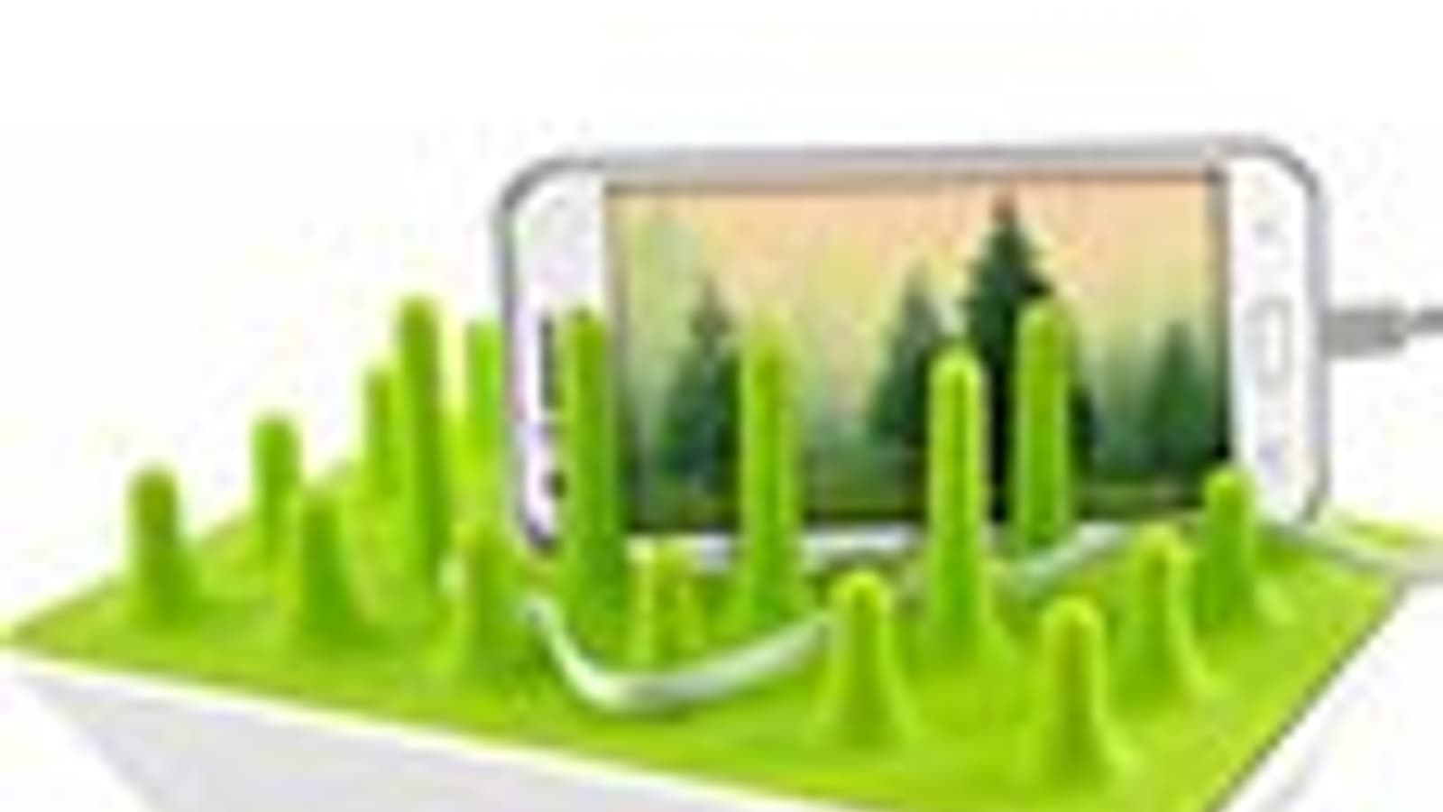 На самом деле эти «сталагмиты» (производитель сравнивает их с деревьями, а у нас возникали также ассоциации с сосцами коровы или другого млекопитающего) имеют чисто функциональное предназначение: между ними можно разместить мобильные устройства таким образом, чтобы они занимали минимум места и при этом не могли упасть. Резиновое покрытие «сталагмитов» достаточно мягкое, поэтому никаких царапин или иных следов на ваших гаджетах не появится. Вдобавок к этому, покрытие не скользкое.