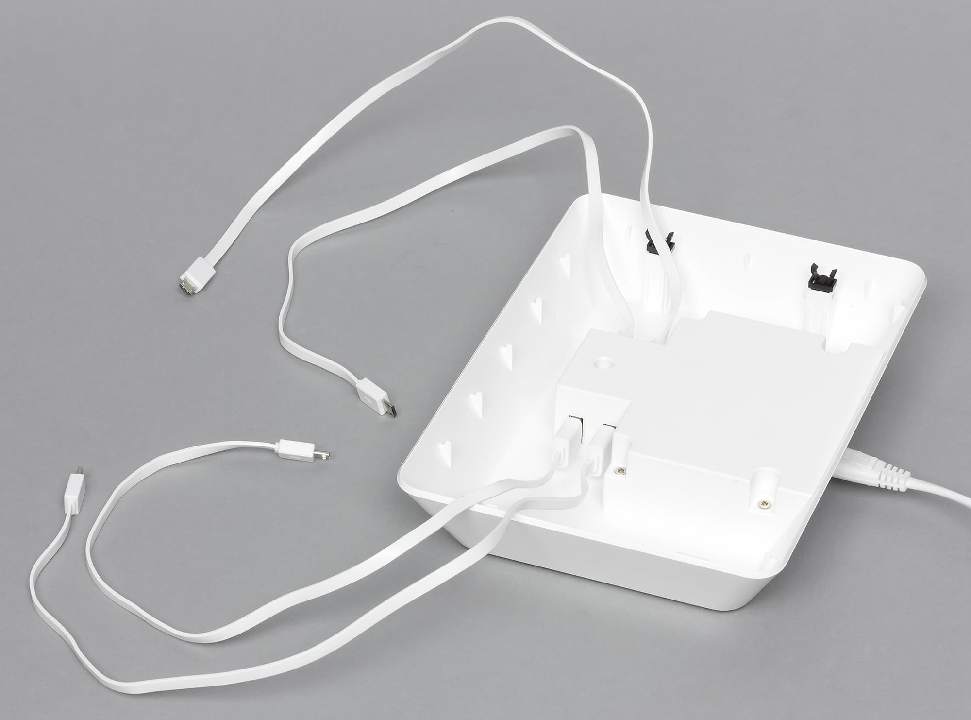 Сразу отметим, что функции индуктивной (беспроводной) зарядки здесь нет. Кроме того, дизайн нельзя назвать интуитивно понятным: чтобы разобраться с док-станцией, придется либо заглядывать в инструкцию, либо читать нашу статью :) Однако как только вы разобрались, как снимать крышку и что к чему подсоединять кабелями, дальше никаких проблем не возникнет.