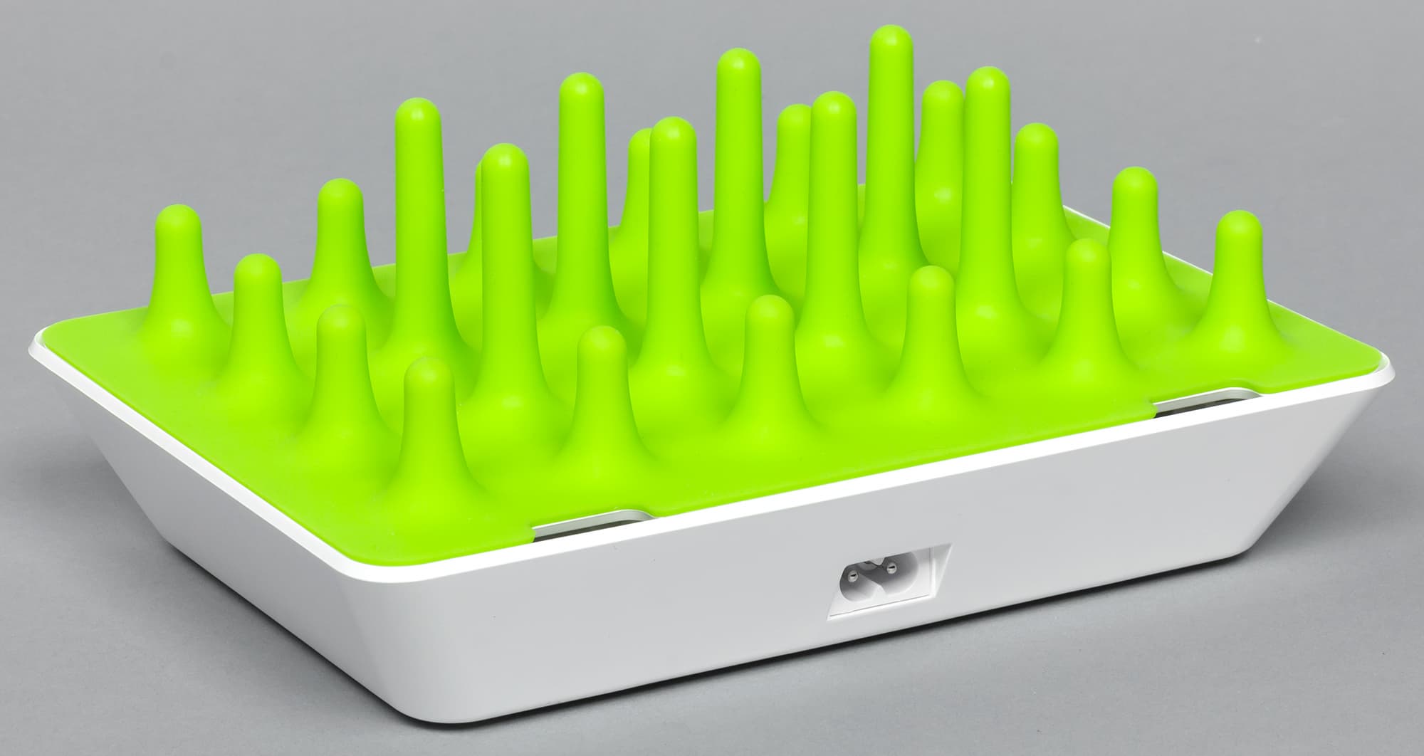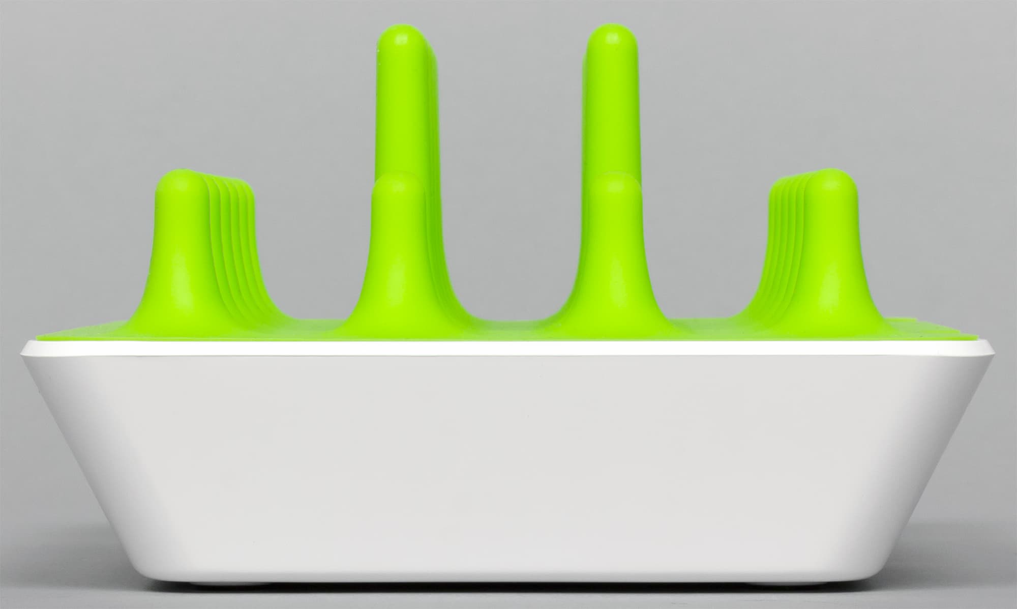 Внешний вид — это первое, что привлекает в Zentree. Необычная форма поверхности вкупе с ярко-салатовым цветом притягивают взор и заставляют отнестись к Zentree как минимум неравнодушно. Поверхность док-станции представляет собой ряд столбиков, похожих на сталагмиты. Их общее количество — 24, причем в центре расположены 8 более высоких. Наверное, было бы еще интереснее, если бы высота у всех была разной. Но и так выглядит оригинально.