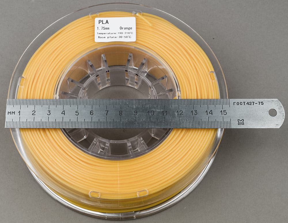 - катушка с пластиковой нитью (нам досталась PLA оранжевого цвета, вес брутто 420 г — т. е. самой нити граммов триста пятьдесят),
