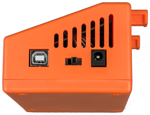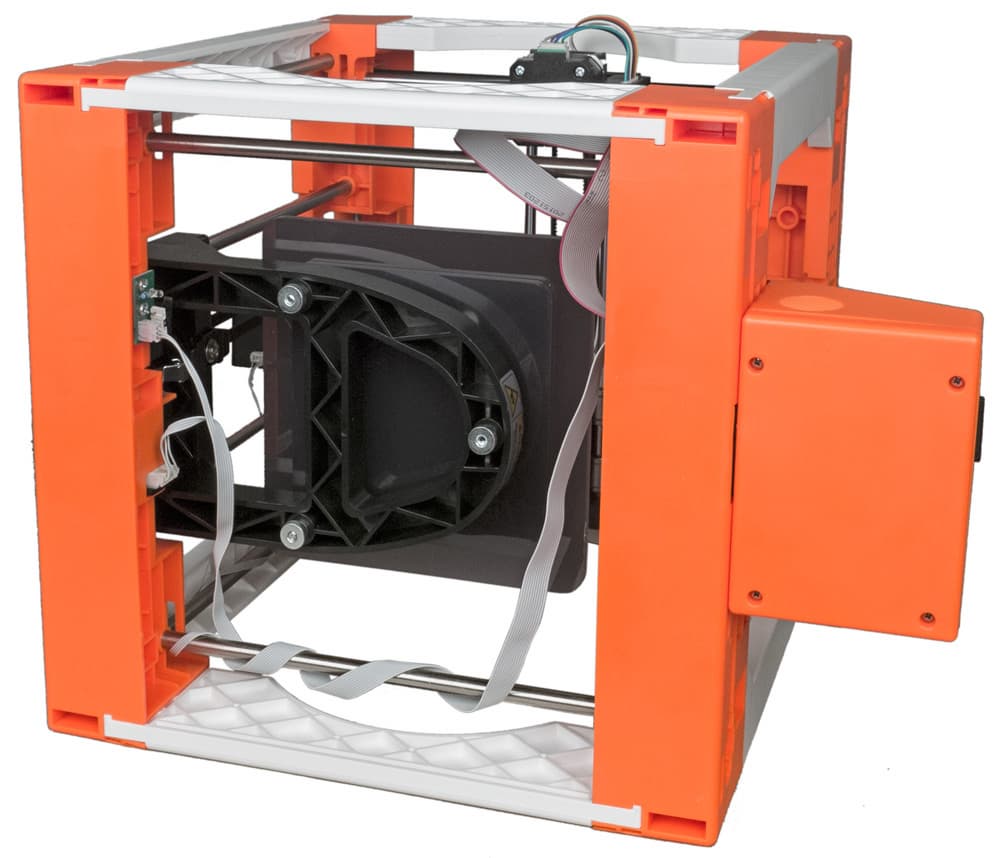 Принтер поставляется в двух вариантах цвета: оранжевый (FP002O) и голубой (FP002B). Точнее, часть элементов пространственной рамы принтера всегда белая, а оранжевыми или голубыми могут быть четыре из восьми горизонтальных элементов и блок управления.