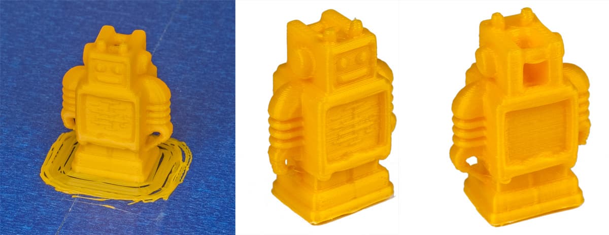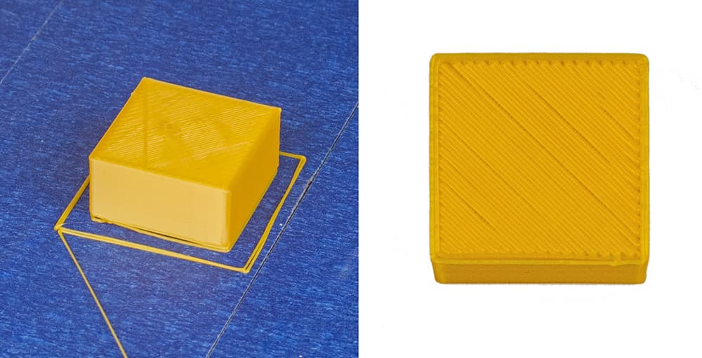 Всё же «плот» гораздо эффективнее удерживает первые слои, хотя и потребуется возня с его последующим удалением с основания модели.