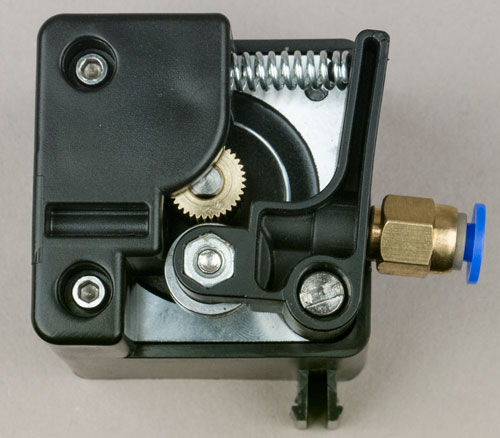 Смущает и другое: ось верхнего ролика свободно перемещается по горизонтали — не произойдет ли в процессе работы то, что мы преднамеренно проделали при установке пружины, то есть не выскочит ли один из концов этой оси из опорного подшипника, но уже самопроизвольно? Вновь забежим вперед: за немалое количество часов, которые оба принтера печатали наши тестовые фигурки, критического смещения оси ни разу не было.