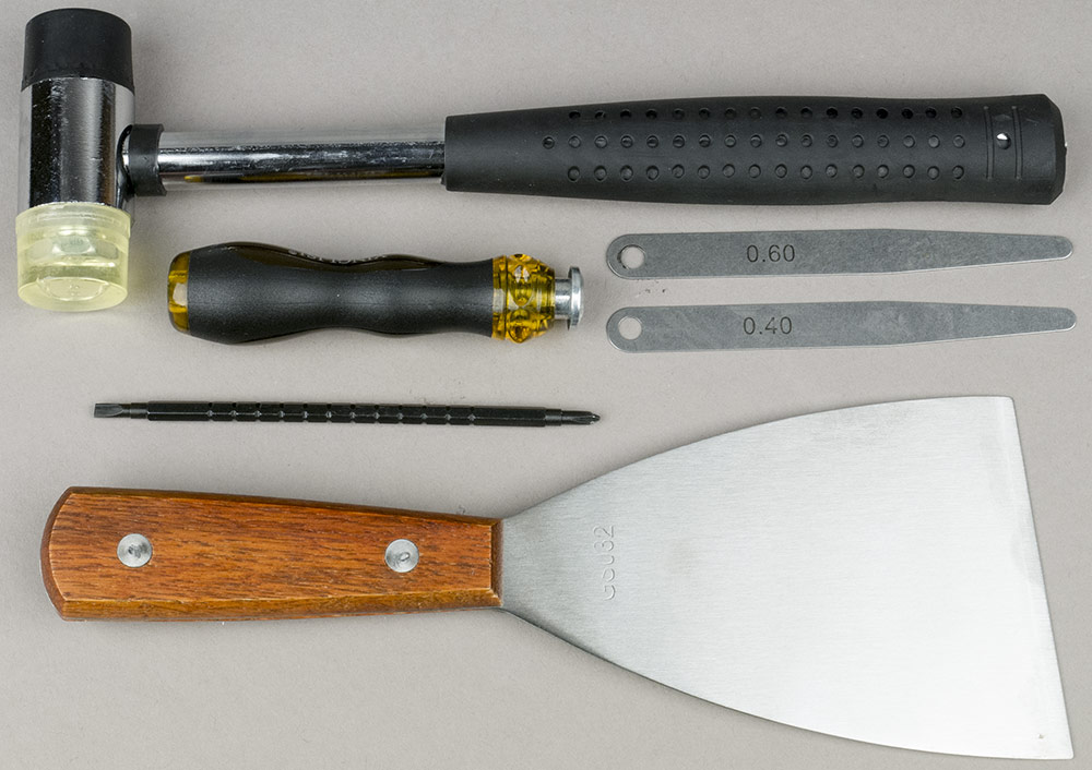 - небольшой молоток с резиновой и силиконовой насадками на рабочих поверхностях,