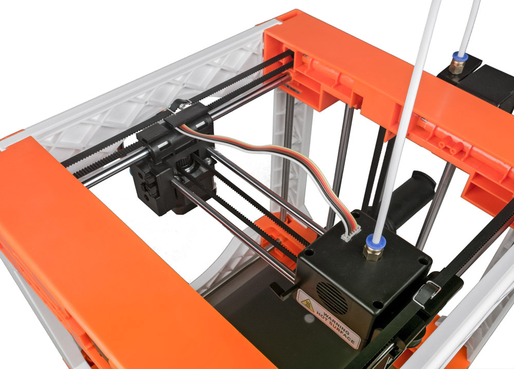 Монтаж крупных деталей, кроме разве что блока управления, закончен, проверяем сборку и опробуем, свободно ли перемещаются по всей длине печатающая головка (оси X и Y) и рабочий стол (ось Z). Если какие-то элементы были наживлены, но не вставлены до конца — досылаем их до упора, используя молоточек из комплекта.