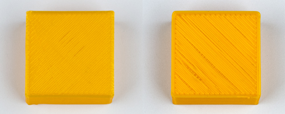 Заодно штангенциркулем с ценой деления 0,05 мм оценили точность передачи размеров по осям, учитывая, что термоусадка у PLA небольшая (по сравнению, например, с ABS): вместо 20×20×10 мм получилось 19,9×19,9×10,15 мм — по горизонтальным осям хорошо, по вертикальной чуть хуже.