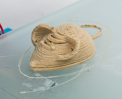Мышь (размер исходной модели уменьшен на 20% средствами Repetier-Host) — 75 слоев, 30:10 мин, 1862 мм пластиковой нити (здесь и далее: по данным слайсера).