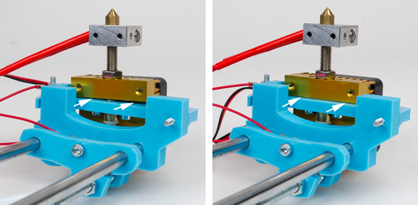 Не очень удачно крепление хот-энда: при печати на него постоянно воздействуют разнонаправленные силы, и после нескольких сеансов крепежные винты М3 начинают выходить из пазов детали Н5. Возможно, ситуация улучшится, если под головку каждого винта положить шайбу и гровер соответствующего размера и тщательно затянуть.
