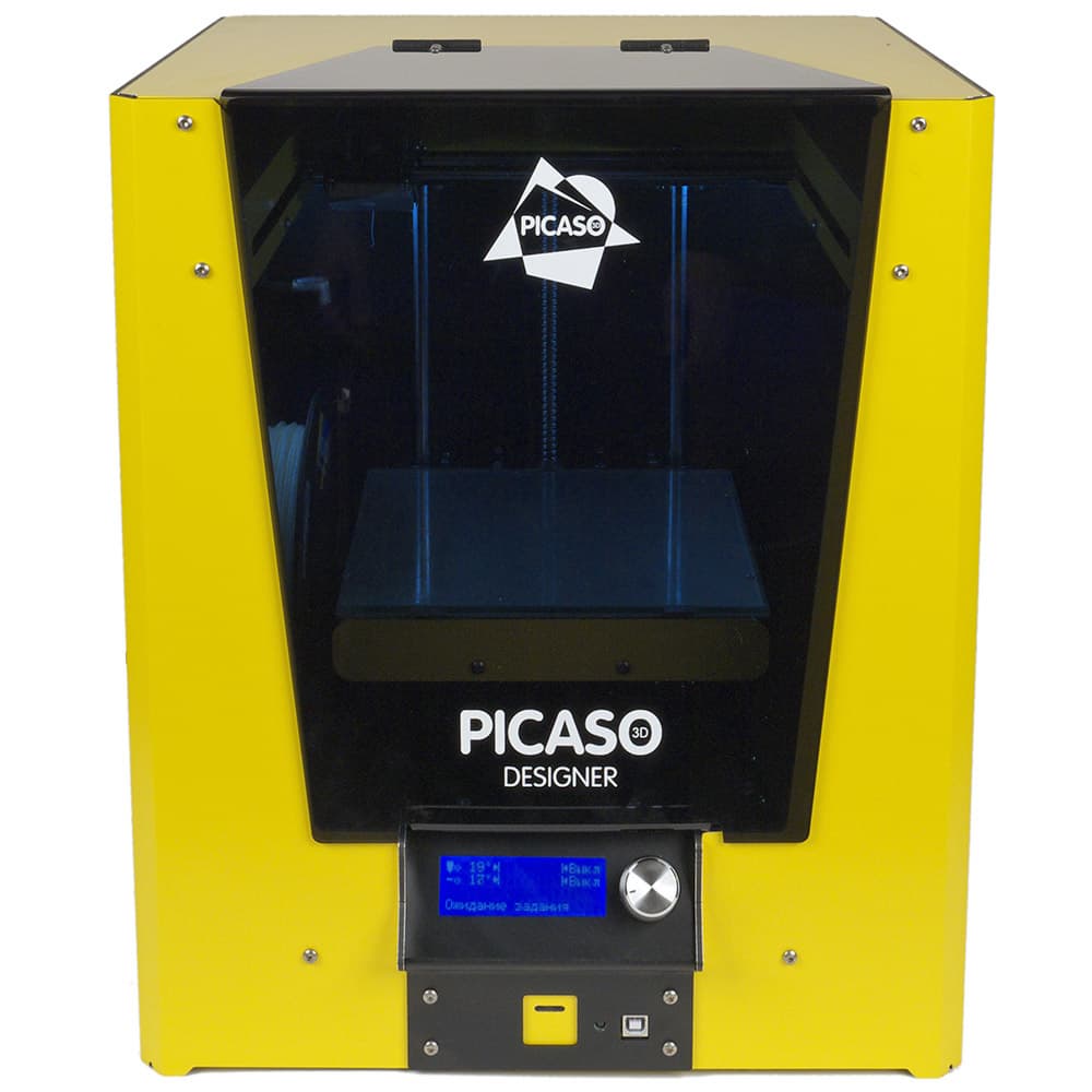 В целом Picaso 3D Designer выглядит настоящим щеголем. Насколько всё это удобно при эксплуатации и полезно при печати, мы оценим во время тестирования. Но однозначно можно сказать: закрытая конструкция безопаснее, хотя тоже до известной степени — любознательному ребенку не составит труда открыть крышку или выдернуть торчащий спереди USB-кабель.