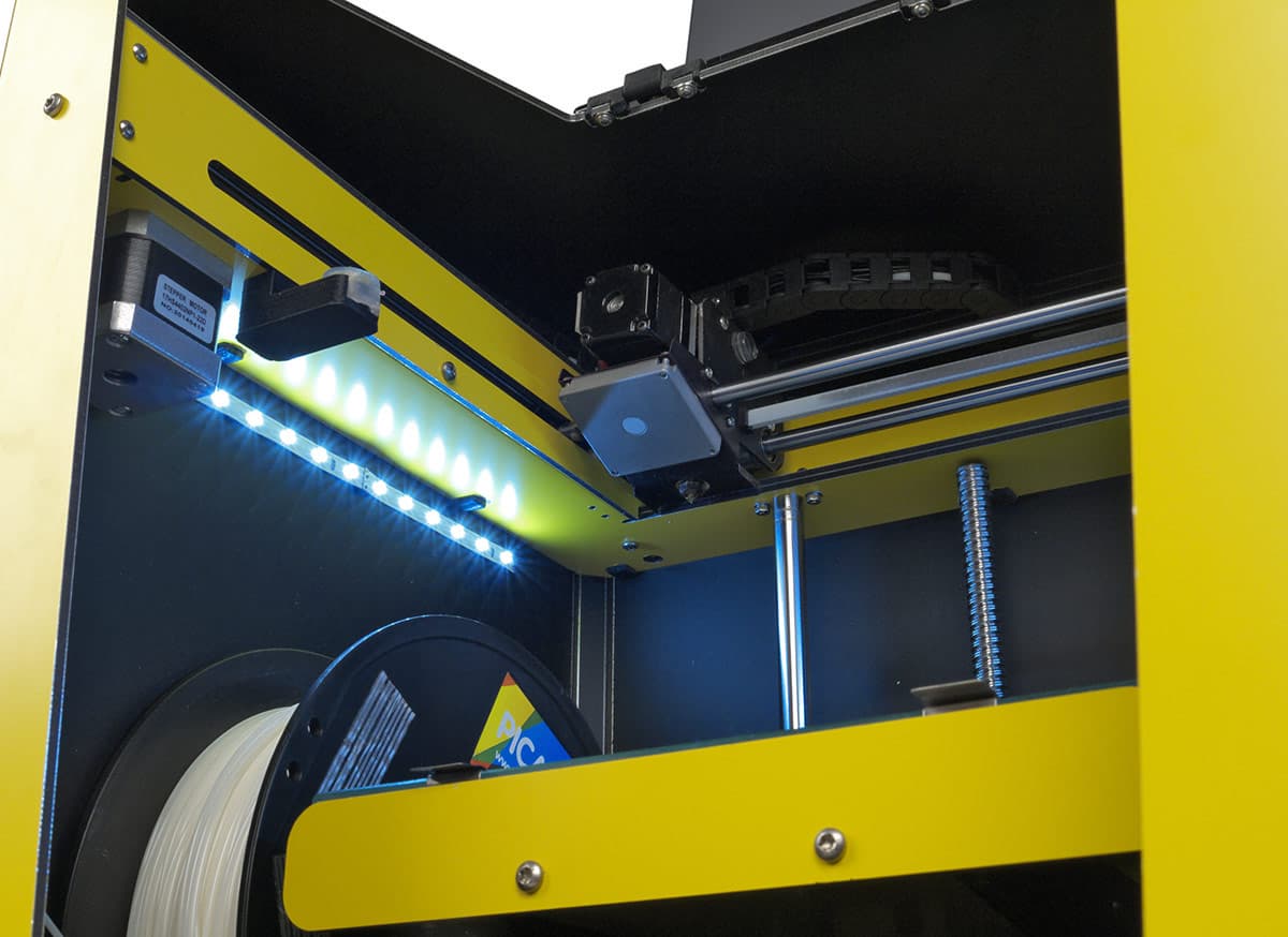 Зато подсветка даже в нынешнем ее виде выручает при снятии напечатанной модели, а также при обслуживании принтера, включая смену пластика или сопла: без нее делать какие-то процедуры в ящике, свет в который попадает лишь спереди и немного сверху, было бы затруднительно.
