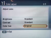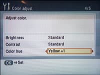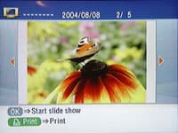 Второй способ намного интереснее и удобнее. Просто подключаем DS700 к разъему Video in нашего телевизора — и все! Сидя в кресле или на диване, при помощи пульта ДУ и удобного, но совсем не простого экранного меню, мы без труда можем задать не только параметры печати, но и просмотреть содержимое карты в режиме слайд-шоу, выбрать необходимые кадры и дать команду на печать. Отсутствие локализации меню, конечно, огорчает, но особого дискомфорта это не вызывает, хотя без инструкции под рукой назначение некоторых пунктов понять довольно трудно.