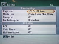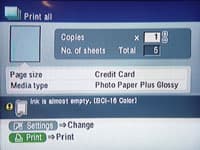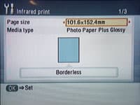 Принтер довольно интересный. Он подкупает в первую очередь удобной работой через пульт ДУ и хорошим экранным меню, выводимым на телевизор. При этом он имеет встроенный карт-ридер, умеет печатать с карт памяти и фотокамер, поддерживающих технологию PictBridge, и рассчитан на бумагу размером 10х15 см.