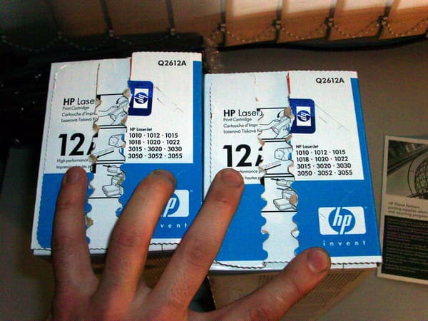 Внутри упаковки картриджи всегда будут упакованы в герметичные пакеты с воздухом. Чтобы «расходники» доехали целыми в любую точку мира. Или чтобы системные администраторы имели возможность поиграть ими в футбол перед установкой в аппарат.
