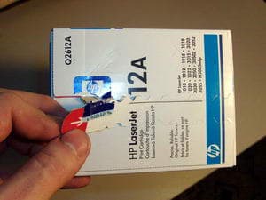Приступим к поискам таких же оригинальных картриджей, работа с которыми проста и приятна. У лазерных расходных материалов НР знакомая нам степень защиты в виде голограммы, а также производственные коды.