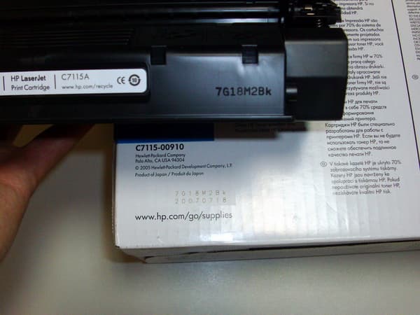 В нашем случае сомнений быть не может — все совпадает. Допускается, чтобы первые пять цифр и букв производственного кода на упаковке картриджей для лазерных принтеров НР совпадали с первыми пятью символами производственного кода картриджа, находящегося в этой упаковке. То бишь различия в окончаниях не стоит принимать как подделку.
