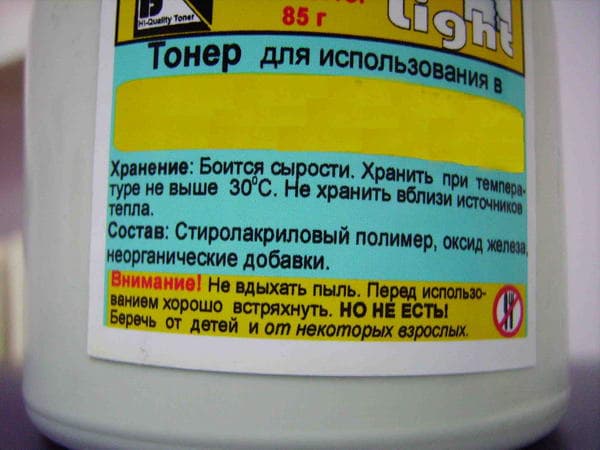 «… встряхнуть. Но не есть. Беречь от детей и некоторых взрослых» — как весело изготовителям тонера и как грустно будет, потом тем, кто заправит картридж НР.