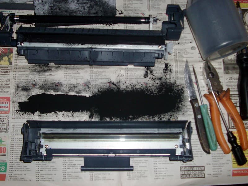 Тонер внутри картриджа почти везде. В легких заправщиков, случаем, такого же нет? Порошок долго оседает после заправки и во время эксплуатации перезаправленных картриджей продолжает разлетаться. Он распространяется почти на весь офис — оргтехника, мебель, кондиционер, легкие человека…