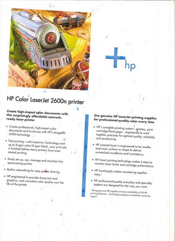 На принтере Hewlett-Packard Color LaserJet 2500 явно был заправлен желтый картридж
