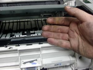 Аппарат будет почти полностью разобран — иначе профилактику не сделать. Тонер, просыпанный на тракт подачи, разносится по всему принтеру. И это снова скрытые затраты, связанные с экономией на картриджах. Дешево заправляя картриджи, вы дорого обслуживаете сами аппараты. Целесообразно ли это?