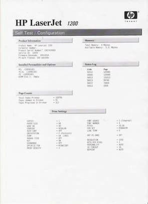 Тестовые листы из меню принтера Hewlett-Packard Color LaserJet 2600: