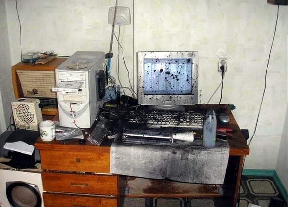 Не знаем, к какой категории отнести этот творческий набор инструментов и его владельца. То ли это художник, то ли маньяк…