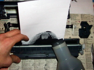 В бункер засыпается тонер. Действительно, ничего сложного в этом нет. Однако это не проходит без последствий для пользователя и заправщика.