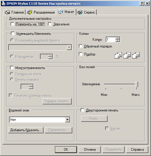| Печать без полей | да |