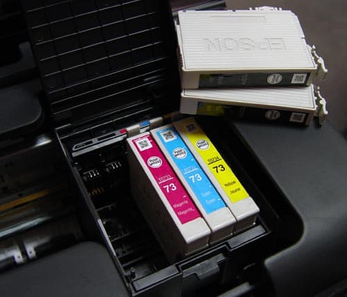 Продолжая говорить о преимуществах офисного использования принтера, стоит обратить внимание на чернила. Пигментный состав новых чернил Epson DURABrite Ultra обеспечивает широкий цветовой охват и стойкость к внешним факторам (влаге, механическим воздействиям и выцветанию). Новые чернила позволяют печатать на любых носителях с гарантированным качеством и четкостью (в отличие от предшествующих DURABrite не оставляют впечатления замыливания и тусклости (отмечено в обзоре Epson Stylus CX3500)).