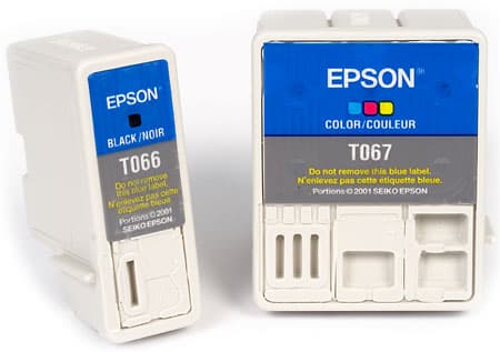 | Ресурс картриджей | Картридж с черными чернилами (T066): Ресурс — около 220 страниц текста формата A4 (при 5 % заполнение) Картридж с цветными чернилами (T067): Ресурс — около 180 страниц текста формата A4 (при 5 % заполнение) |