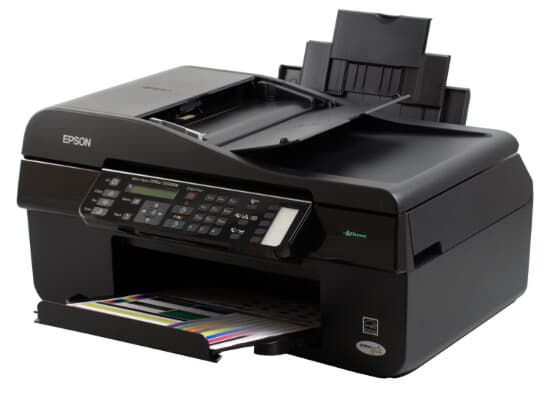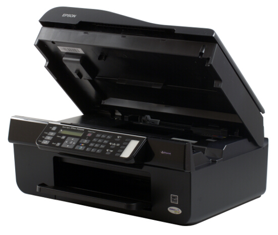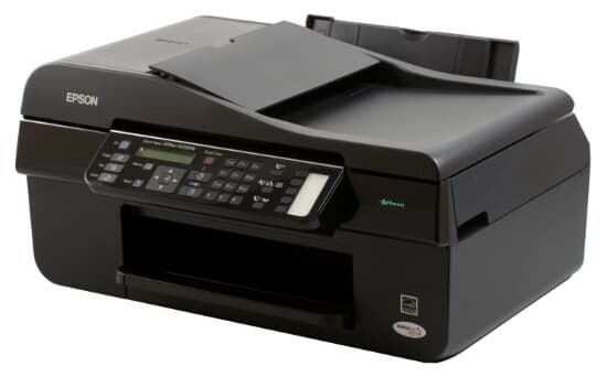 Epson Stylus Office TX510FN имеет размеры, которые можно назвать классикой для струйного МФУ формата А4. Принтер оборудован одним лотком для подачи бумаги, расположенным сзади устройства. Бумагоулавливатель находится спереди и в периоды простоя может быть запросто задвинут внутрь для освобождения пространства перед принтером.