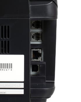 Выходы для соединения с внешним миром представлены разъемами USB, LAN и парой телефонных портов.