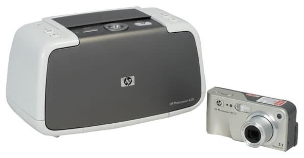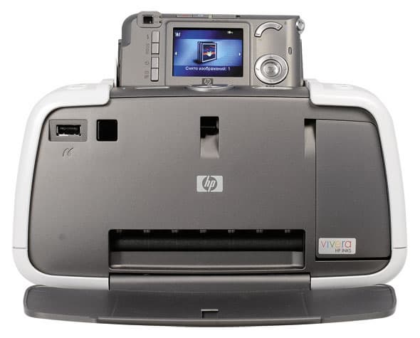 Комплект НР Photosmart A428 представляет собой устройство 3-в-1. Это портативный фотопринтер HP Photosmart 420, док-станция и цифровая фотокамера HP Photosmart M517. Сердцем комплекта A428, несомненно, является принтер. Его можно назвать одной из модификаций третьей серии компактных фотопринтеров НР, с аналогичными техническими характеристиками и отличительной чертой в виде встроенной док-станции.