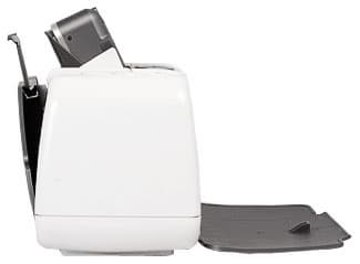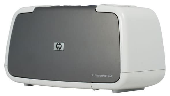 Корпус HP Photosmart 420 выполнен в двух цветах: темном с серебристым отливом и молочно-белом. Практически все, что мы называем корпусом устройства, имеет свое назначение. Передняя крышка принтера — это не что иное, как приемный лоток для готовых фотографий, а задняя часть, откинутая буквально на 30°, превращается в лоток подачи бумаги.
