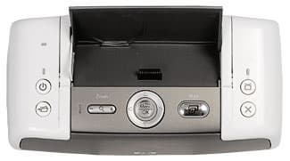Мы уже привыкли к тому, что дисплеи фотопринтеров имеют изменяемые углы, что позволяет выбрать оптимальный наклон для комфортного просмотра фотографий или работы с меню. Так как в Photosmart 420 свой дисплей не предусмотрен, то наклон посадочного места док-станции на 45° можно считать оптимальным решением.