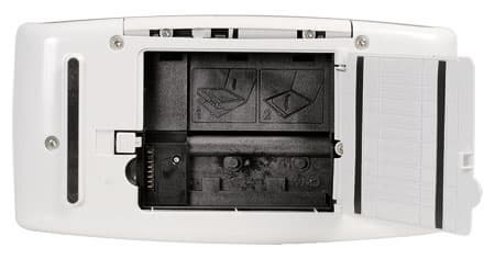 На передней части принтера находятся: USB-разъем для подключения Bluetooth-адаптера или фотокамеры с поддержкой PictBridge, окно ИК-приемника, защелка для фиксации лотка и отсек для смены картриджа. Интерфейсный разъем USB и гнездо для подключения сетевого адаптера находятся сзади. Здесь же расположен совмещенный разъем аудио-видео, позволяющий вывести изображение на телевизионный приемник. На экране телевизора можно просматривать не только фотографии, но и видеоклипы, ведь камера Photosmart M517 имеет режим видеосъемки. Интерфейсный шнур аудио-видео и пульт дистанционного управления входят в комплект поставки.