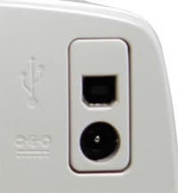 На обратной стороне принтера расположились разъемы для подключения блока питания и USB.