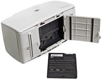 В нижней части корпуса расположен отсек для аккумулятора, способного обеспечить автономность в течение длительного срока. Его зарядка длится 5–6 часов. Практика показала, что НР 375, используя аккумулятор, способен распечатать около 30 фотографий с предварительным просмотром и обработкой.