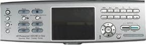 Удачно решен вопрос с панелью управления, которая выполнена с изменяющимся углом наклона через малый фиксированный шаг. Это позволяет установить устройство практически на любой доступной высоте. При включении, кнопка питания также как и кнопка одной из основных функций устройства, расположенные с левой стороны панели управления, загораются и подсвечиваются синим светом. В центре панели размещен большой LCD-дисплей с диагональю 9,1 см. Для увеличения срока службы дисплей гаснет после двух минут бездействия. После 60 минут бездействия цветной графический дисплей переходит в спящий режим и экран полностью отключается. Дисплей снова включается при нажатии любой кнопки на панели управления, поднятии крышки, установке карты памяти, доступе к аппарату HP All-in-One с подключенного к нему компьютера, а также подключении накопителя или фотокамеры к переднему порту USB.