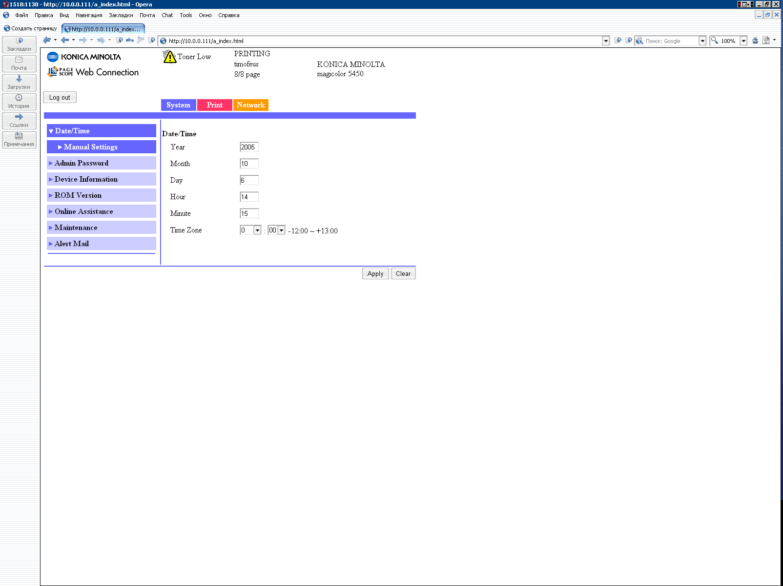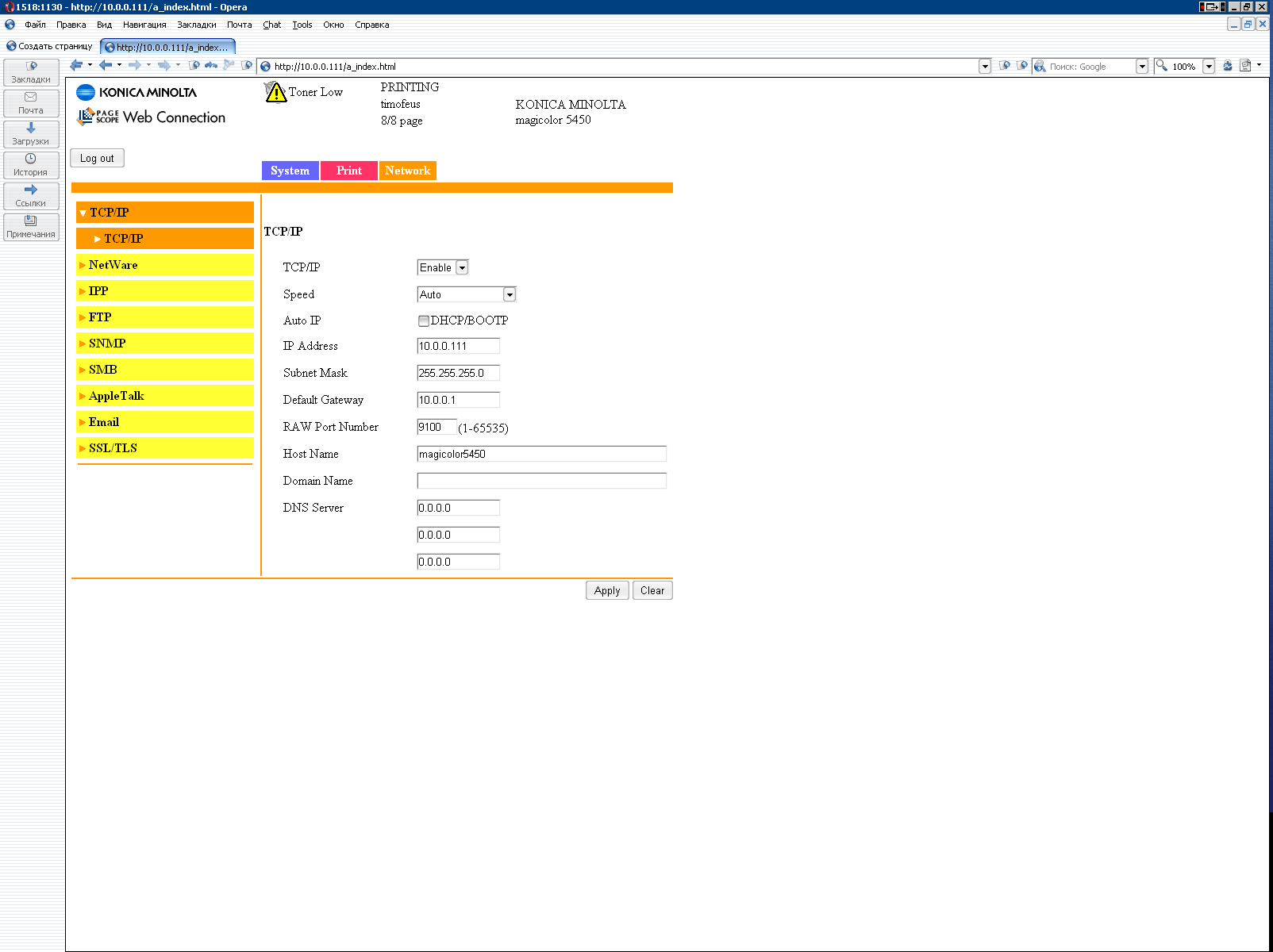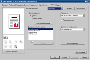 В заключение этого раздела, более или менее разобравшись с математическим обеспечением (перестаем клевать носом!), коснемся интерфейсной части принтера. Панель управления находится спереди-сверху, включает в себя традиционный жидкокристаллический экран и небольшое количество кнопок, то есть здесь все вполне традиционно. Меню разветвленное, оно позволяет влиять на весьма многочисленные настройки. Как и подобает современному принтеру такого класса, на борту установлен собственный web-сервер, позволяющий выполнить настройку принтера и получить информацию о его текущем состоянии с помощью обычного браузера. Интересной особенностью встроенного программного обеспечения является тот факт, что если у вас в офисе до этого уже были установлены принтеры производства HewlettPackard под управлением фирменного сервера печати HP JetDirect, то аппарат KonicaMinolta интегрируется в такую сеть и также сможет управляться этим принт-сервером. В общем, сплошные удобства. Также на левой стороне есть любопытный разъем для подключения цифровых камер с функцией прямой печати по стандарту PictBridge. Что тут сказать — веяние времени. Хотя на тестовом образце этот порт не работал (текущая прошивка принтера не поддерживала PictBridge), по нашим последним данным уже выпущено обновление прошивки, где все исправно функционирует. Что касается драйверов, то их установка не вызвала никаких затруднений, а возможности настроек соответствуют классу и возможностям устройства. В качестве интерфейса подключения был выбран Gigabit Ethernet как наиболее логичный и удобный (соответственно, принтер подключался к свободному порту гигабитного коммутатора и туда же был подключен стендовый компьютер с гигабитной сетевой картой. Напомню, что разъемы в сетевых розетках и на патчкордах также должны быть заделаны с поддержкой гигабитного режима).