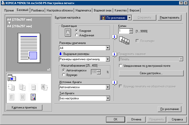 настройки: color, 600dpi, автоматический цвет, бумага 190 г/м2
