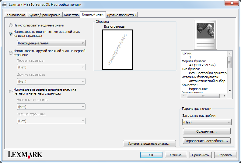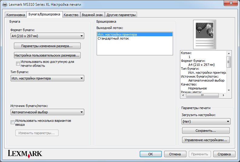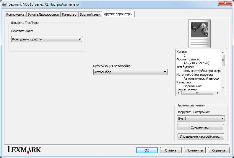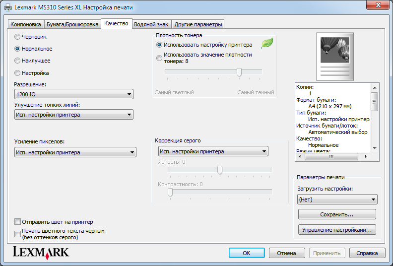 Настройки драйвера печати