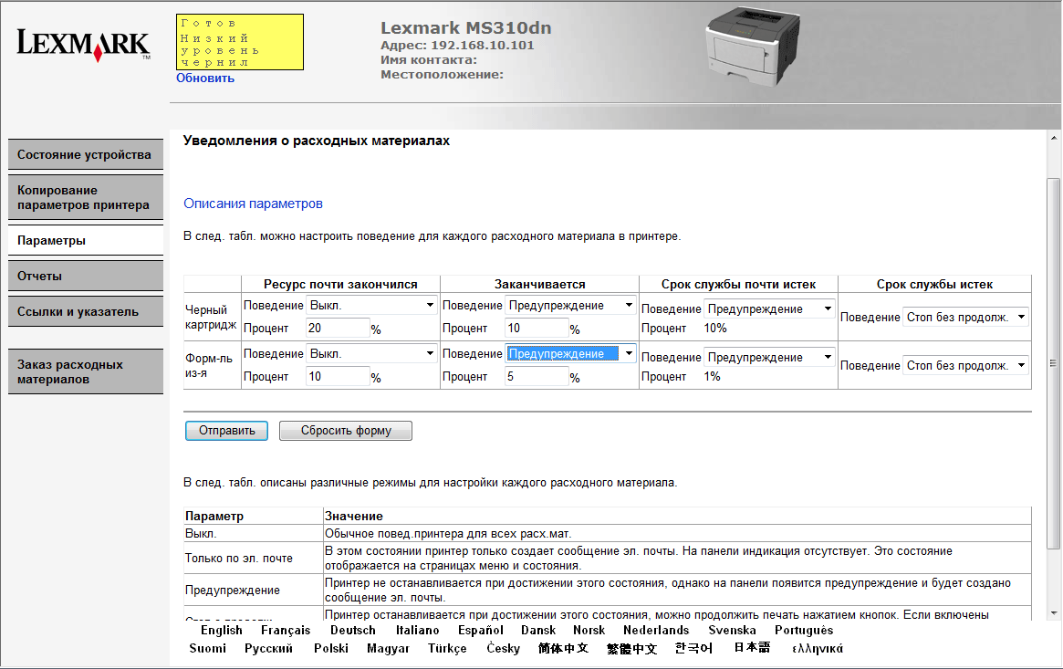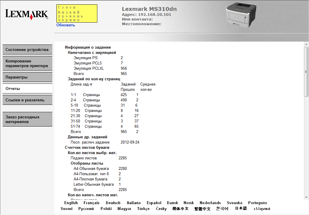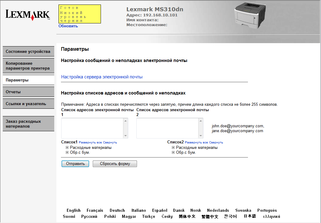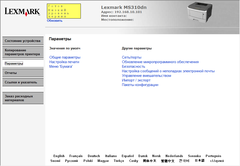 Скриншоты Lexmark MS310dn