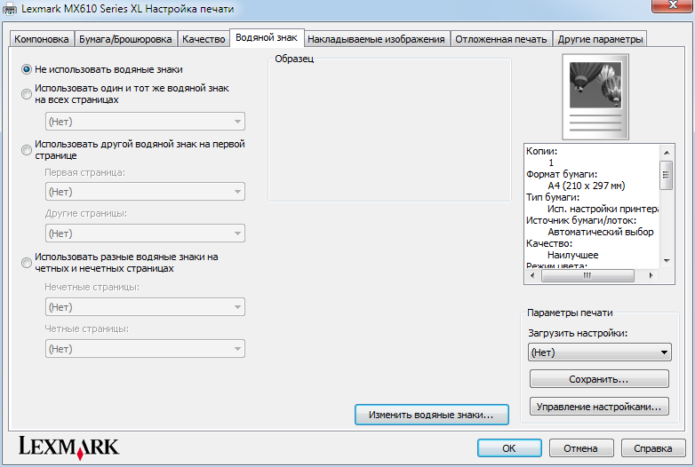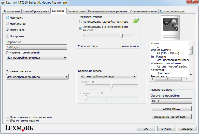 Настройки драйвера печати