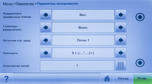 | Макс. количество копий за цикл | 999 реально ограничено емкостями приемного и подающих лотков |